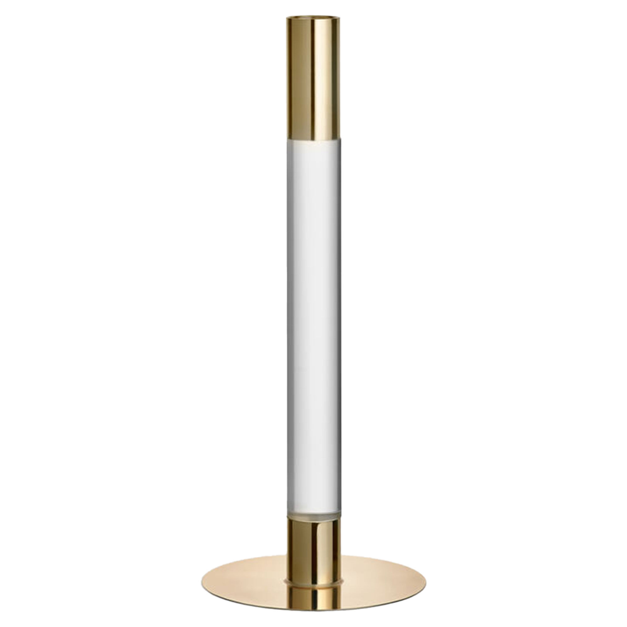Lumiere fra Orrefors er en serie lysestager, hvor krystalklart glas og spejllignende metal mødes i en form, der er lige så minimalistisk som udtryksfuld. I denne model på 26,5 cm kombineres det klare glas med guldfarvet metal, hvilket giver et varmt og el